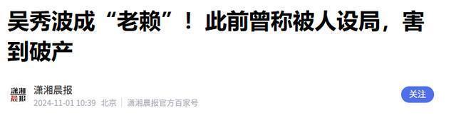潇湘晨报2024-11-01吴秀波成“老赖”!此前曾称被人设局,害到破产